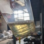 Kiitos Brewing tackled the challenge of a 100% fonio grist by utilizing its mash press. Bourque says the mashing process with fonio was different because, unlike other alternative grains, fonio tended to sink to the bottom of the mash mixer. To keep it homogenized with mash water they had to run the agitators rather aggressively. “Mash out for us usually looks like large dry squares. The mash pressing of the fonio did not seem to squeeze out the moisture; when we separated the mash filter plates we had something more akin to Malt-o-Meal in between – very wet, very messy. That being said, we saw just as much efficiency from the mash of fonio that we would see in barley or millet.” [Ed. note: Garrett Oliver explained to us that, from his experience in more traditional mash setups, efficiency of fonio was slightly less at 72% versus a more standard 76% for other malts. YMMV.]